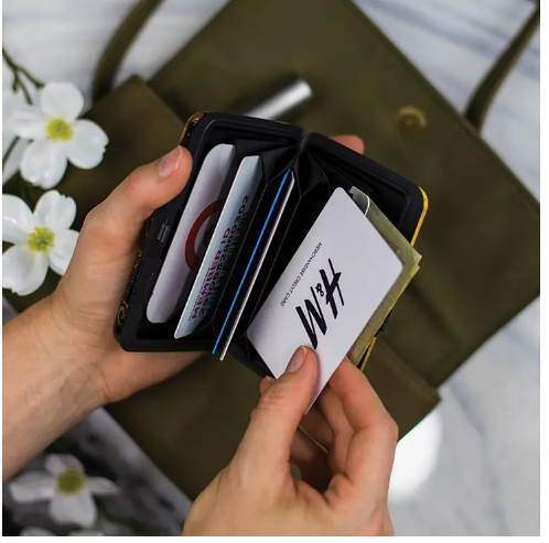 How it works: The lining of the wallet is made with a material that interferes with the radio waves emitted by RFID scanners, preventing them from reading the information on your cards.