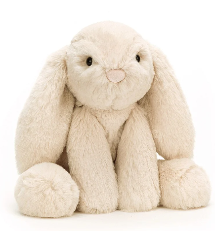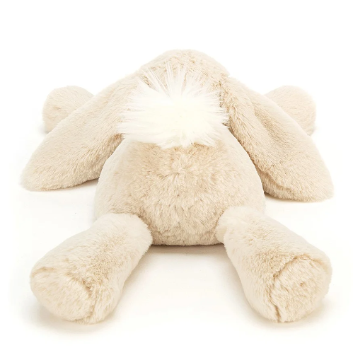 Smudge Rabbit is such a sleepy sweetie - always sprawling out, lazing on the bed or rug! Scrumptiously soft in oatmeal fur, this lop-eared lazer just captures the heart. An incredibly lopsy and loving companion, Smudge is a great gift for any bouncing baby. Bonnets and bobtails - we like it!