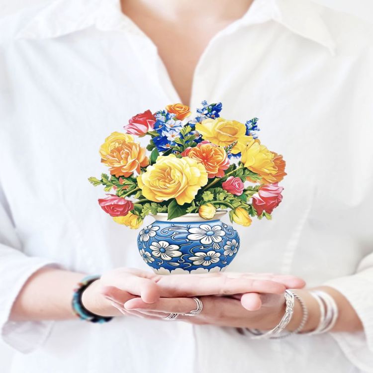 A bright and refreshing pick-me-up in a perfectly petite size. Decadent shades of raspberry red, tangerine, strawberry pink, and limoncello burst from an array of roses, alongside snapdragon accents in a fitting floral-print ceramic vase.