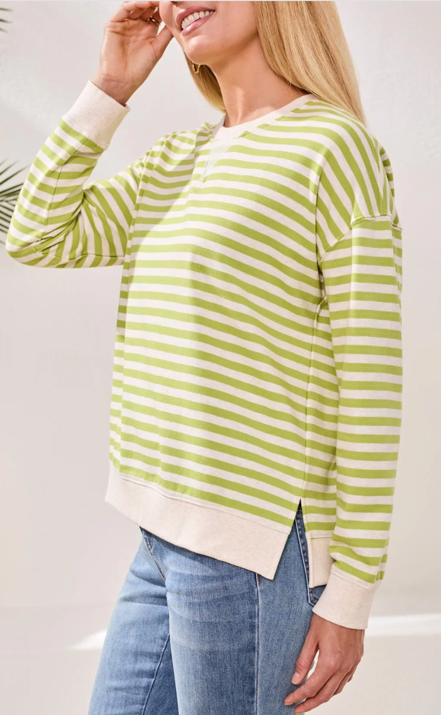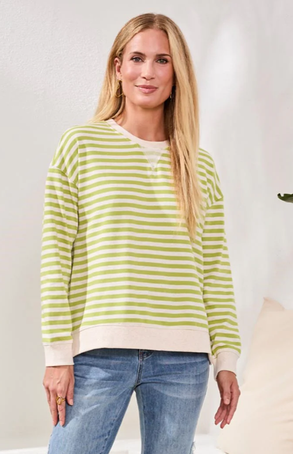 Enjoy cozy comfort and bold color in this long sleeve stripe crew top, crafted from French terry for an ultra-soft feel. The colorblock combo brings playful edge, while the relaxed fit keeps you feeling at ease every season.