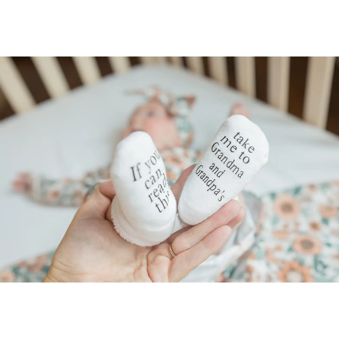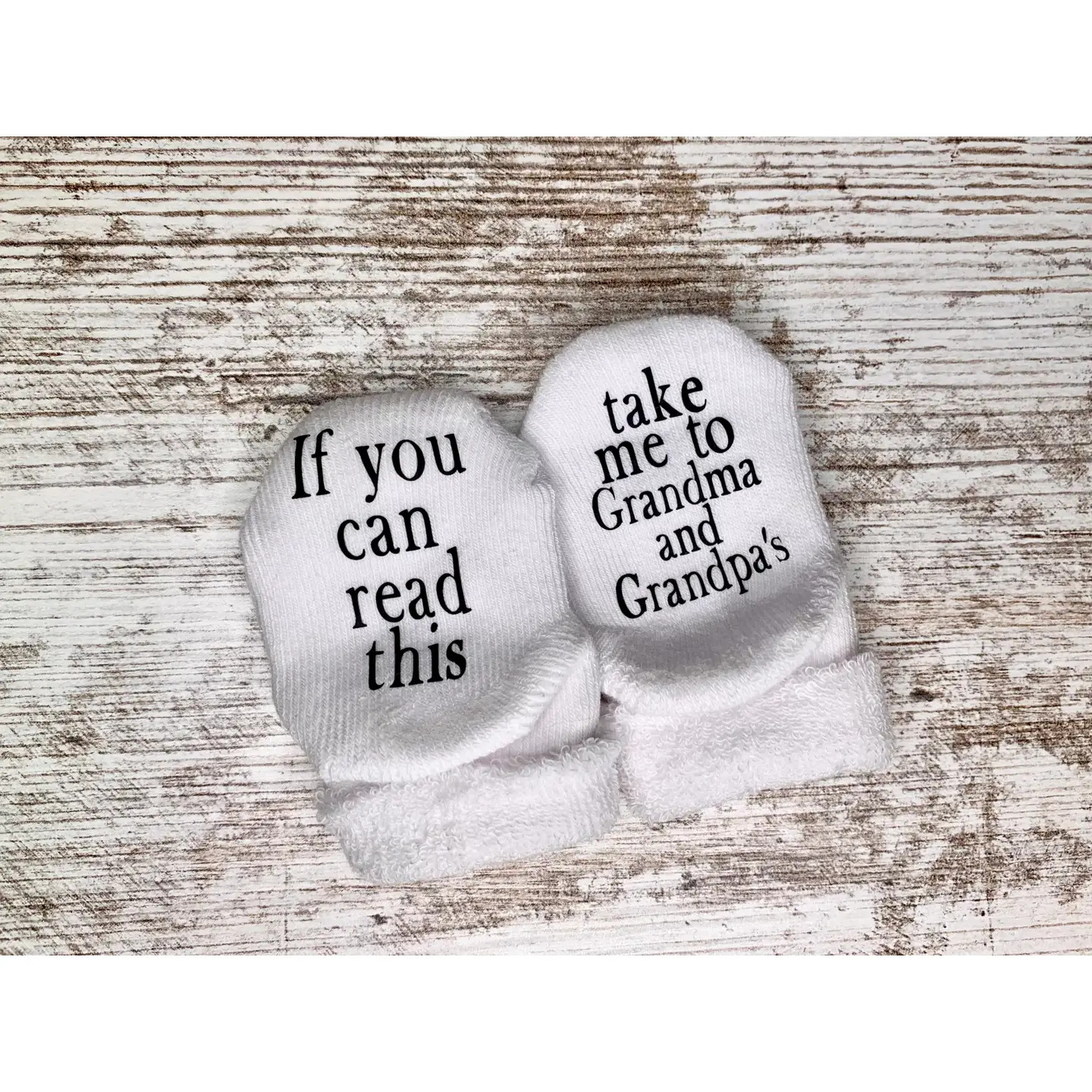 These adorable socks make the perfect baby shower or a fun surprise for Grandparents!