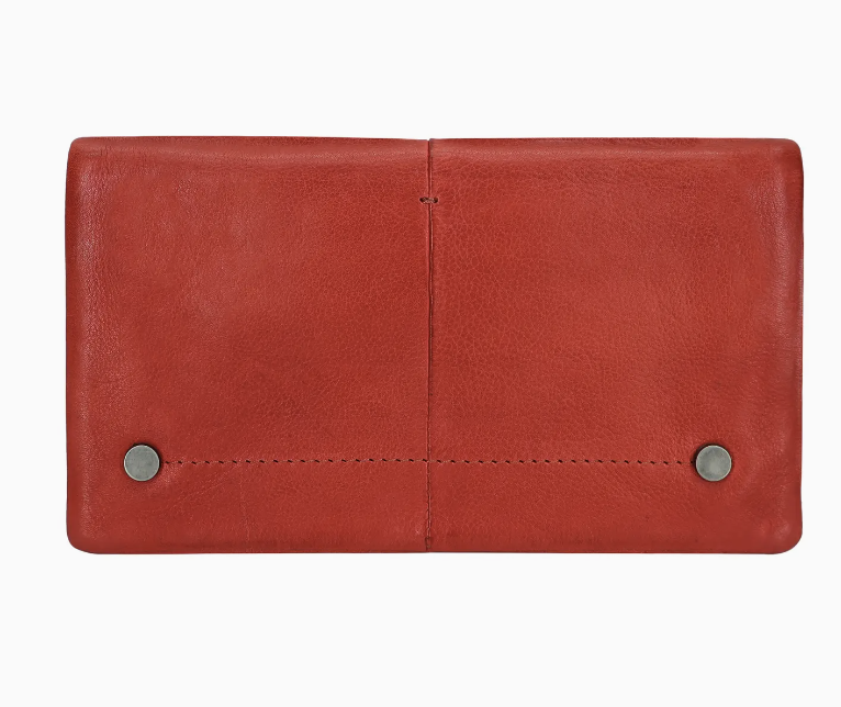 Your everyday wallet, but better. Two hidden magnetic snaps for extra security plus open and zippered interior pockets. Rest your fingers in the leather loop at back for a more secure grip.