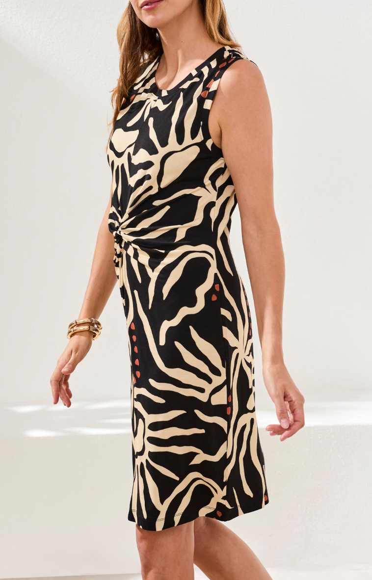 The printed jersey fabric hugs gently, keeping you cool and confident from sunrise to sunset in resort-inspired colors.