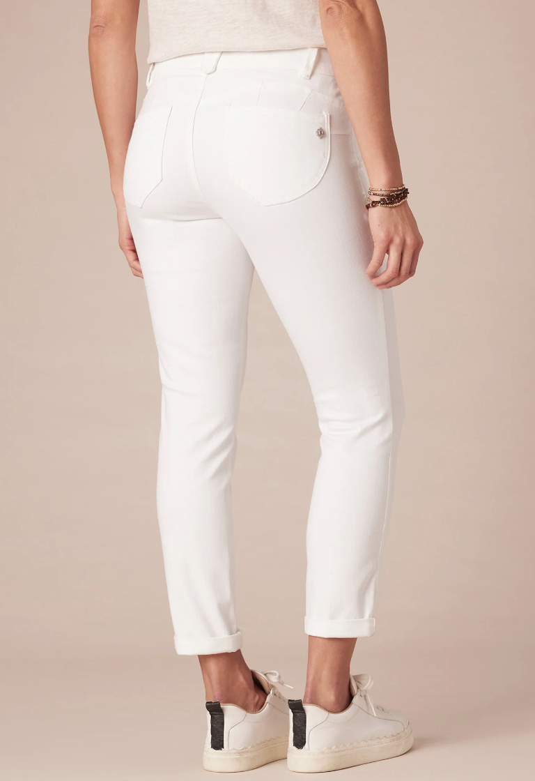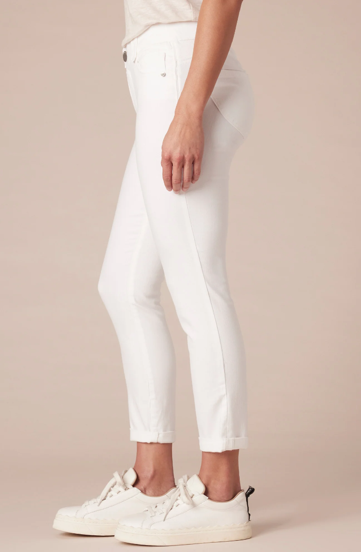 A staple you must always have in your wardrobe is stretch white denim ankle-length mid rise skinny cropped jegging jeans. The "Ab"solution Ankle Skimmer offers tummy control with slimming mesh panels in optic white stretch denim.