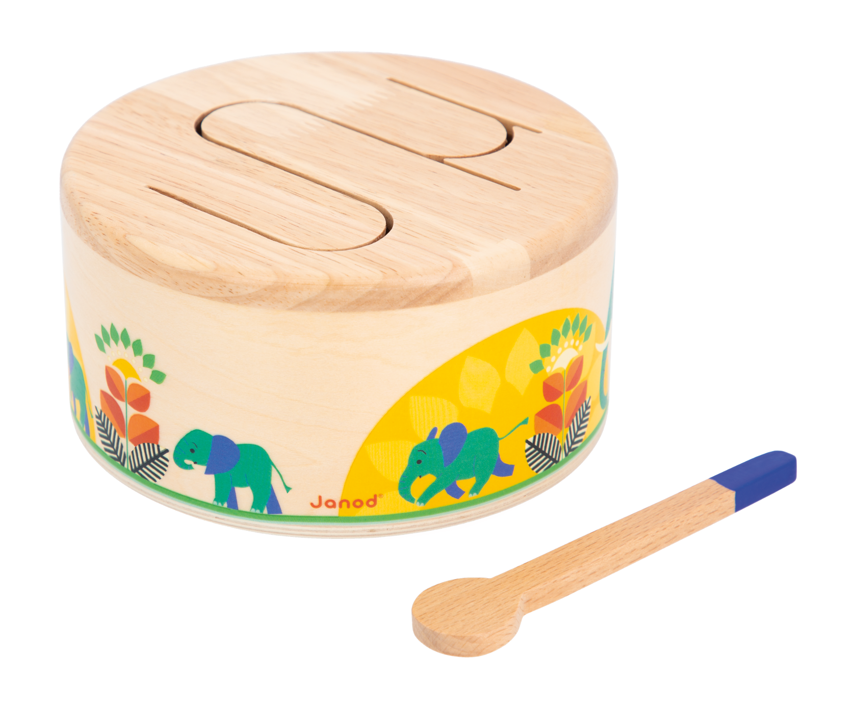 A drum set made for the way babies play! The bright colors and unique fabric textures invite little hands to feel and explore. Then, as baby pats, squishes, and thwacks each bouncy piece, the whole thing comes to life with music! Create fun sound effects, play to a backing track, or just goof around with funny animal sounds. It’s a ruckus of sensory-learning excitement!