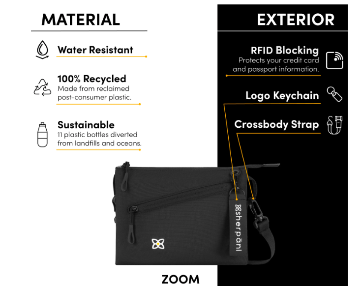 Quick trips. Errand outings. Spontaneous plans. Whatever the occasion, the Zoom crossbody was built to keep up. The Zoom keeps your essentials close in a slim, lightweight silhouette, while RFID protection and water-resistant fabric give it an edge when you’re on the run. The divided main compartment adds double the organization, and its unique shape complements whatever the day throws your way.